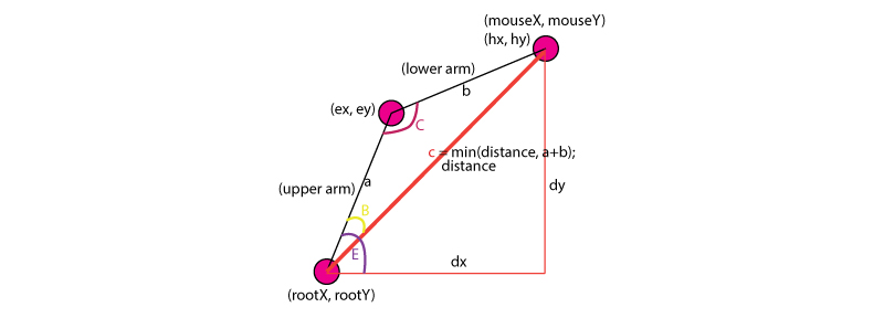 ellipse(ex, ey, 10, 10); // end point of upper arm