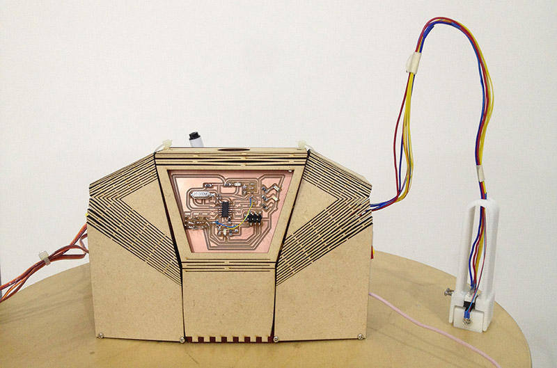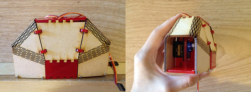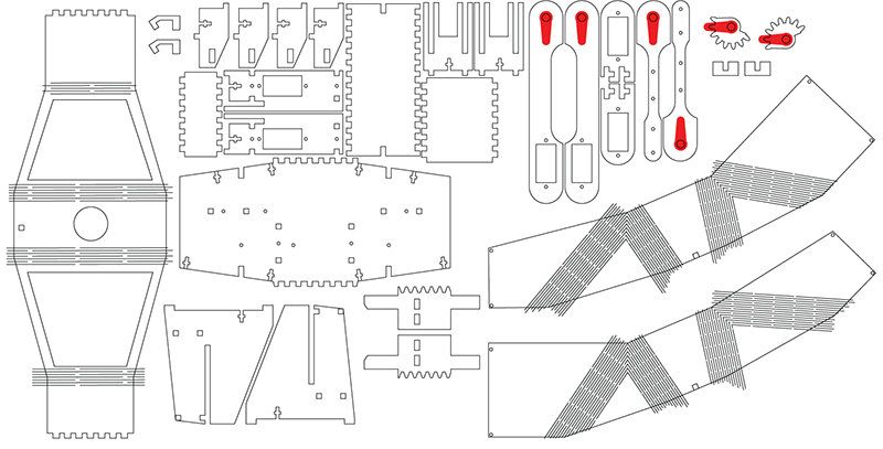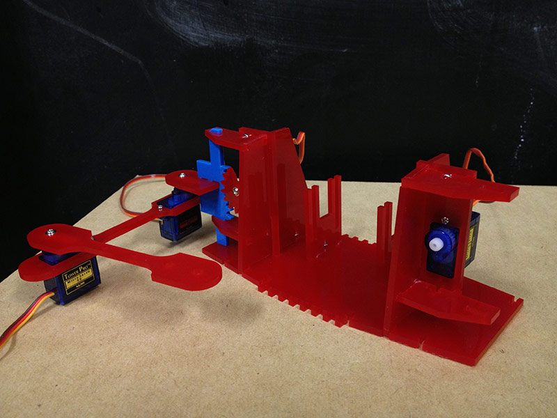 There is not enough space for servo motor to LIFT the arm. And the bending curve of MDF can be easily break when I assembled parts.
