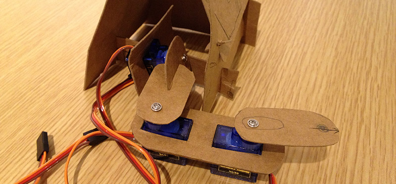 Arm design is the most important part. I study arm structure by using paper prototype. Hand made prototype helps me understand where to put servo and how they move.