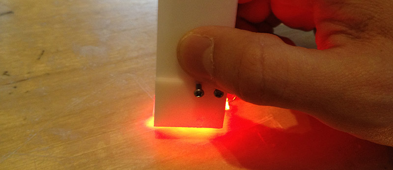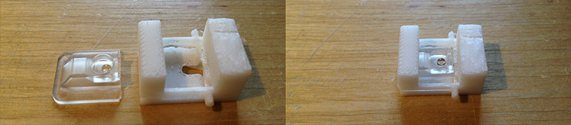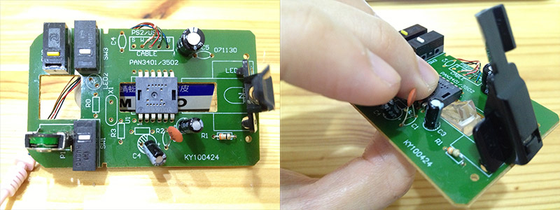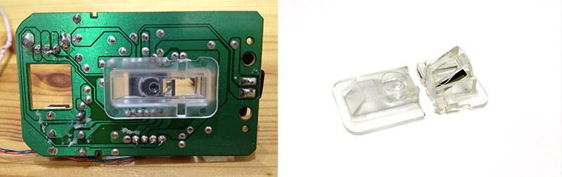 There was a small lens inside optical mouse. I used wire saw to cut the size I want. In order to make it work, the relationship among red LED, optical sensor and lens can not be changed.