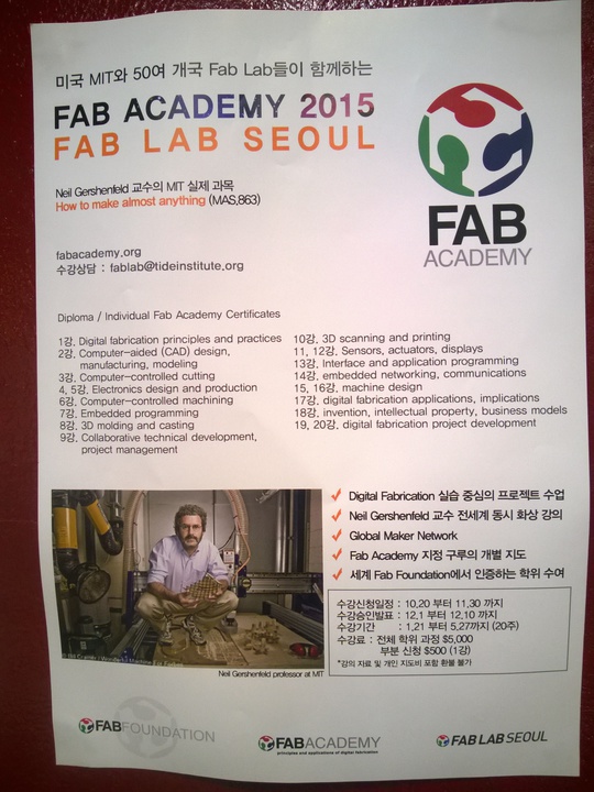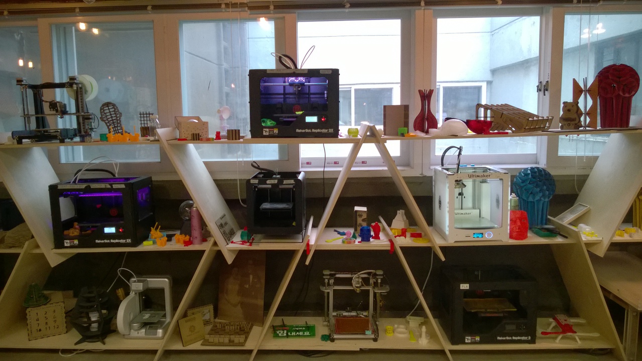 Fab Lab Seoul is an investment of Tide Institute and seems to be very rich, though Dong-Hyun told me that it's not easy to maintain it financially. I am impressed with the number of facilities they have. Guess how many 3D printers they have? 10! The main difference between here and other Labs is that Fab Lab Seoul is more like an educational institute than community. So don't go there on weekends - it's not open!