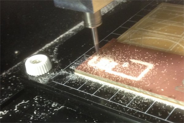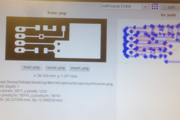 I then started to design an mill a simple capacitive touch board. It was at this point I was very thankful that our Babeduino was working. Creating this board was much quicker and easier because of it.