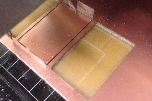 Then when it came time to cut the other side. Everything was working fine to begin with. we used the same area to cut the other board and made the bads big enough so that if the vias and holes were unaligned it wouldnt matter too much. I then cleaned up the furry traces with an old broken 1/64 bit which worked a treat.