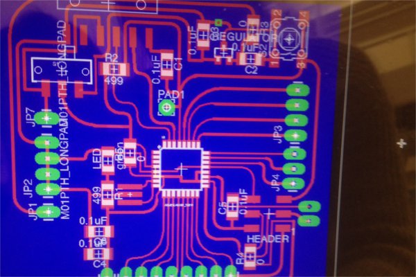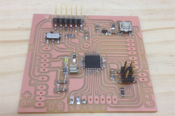 After this it was just a case of milling and soldering, which because we made the Atmega pads really long, was no problem at all!