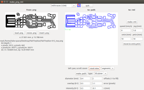 I downloaded "fabTinyStar-012.tar_.bz2_.txt V0.3 (Bas)". 3. Make mill data of FabISP using Fab Module. Then, we need to change parameter for milling