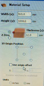 2. Setting material data, size, origin position, and units. I set like below pictures.
