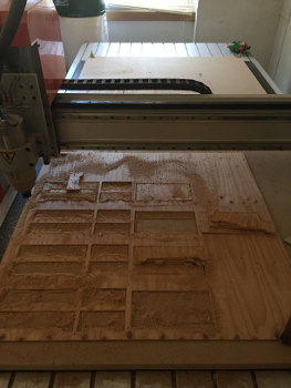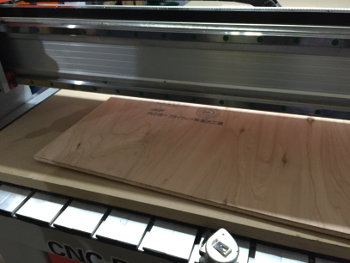 This is MashCNC1. Setting material. In this time, I used T12 plywood board. Board must be aligned with base stage line.