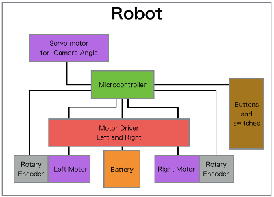 Main partd are DCmotors, micro computer PCB, motor driver PCB, neck motor.
