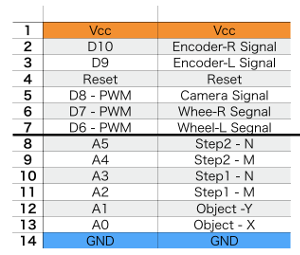 For example, servo motoer for neck angle coudn't move. Becaouse, servo library can't use with other PWM signal for left and right motors . Other point, encoder could detect slit of encoder disk. I wanted to use this count for knowing the advanced distance.