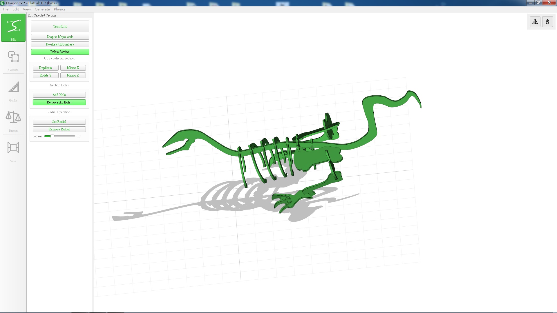 FlatFab can generate vector file after user finishes and specifly the thickness of the material. However, the auto generating process is not quite smart. The generated file wastes a lot of material if uses directally, therefore some user modification is required.