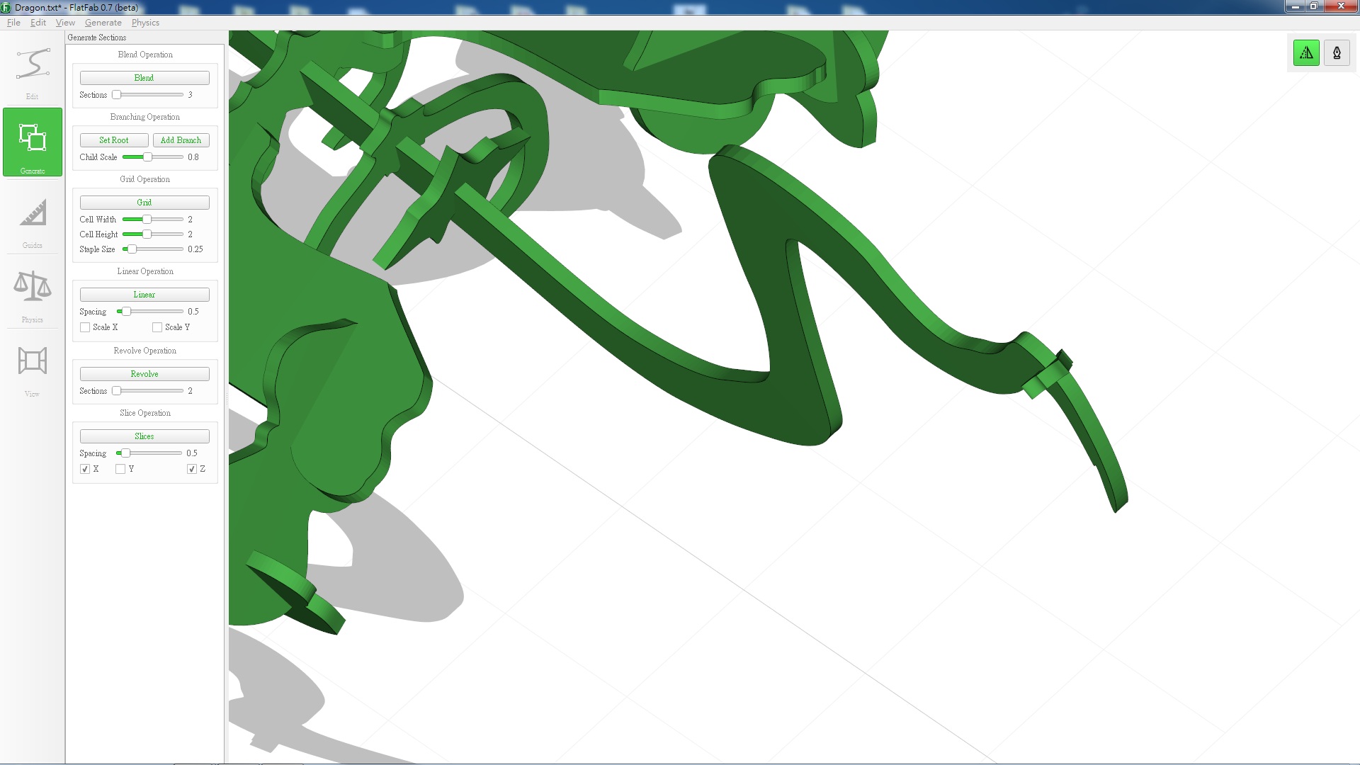 First, my conclusion, FlatFab is a very easy to use and fun press-fit kit design tool for designs that doesn't require dimention accuracy. I am surprised by what I am able to draw out for not just my first FLatFab project, but also as my first ever organic shape press-fit kit. Before this week, all my drawing for laser cut are either enclosures, or flat panel design without any sluts. I highly encourage anyone to give it a try, beginner or not.