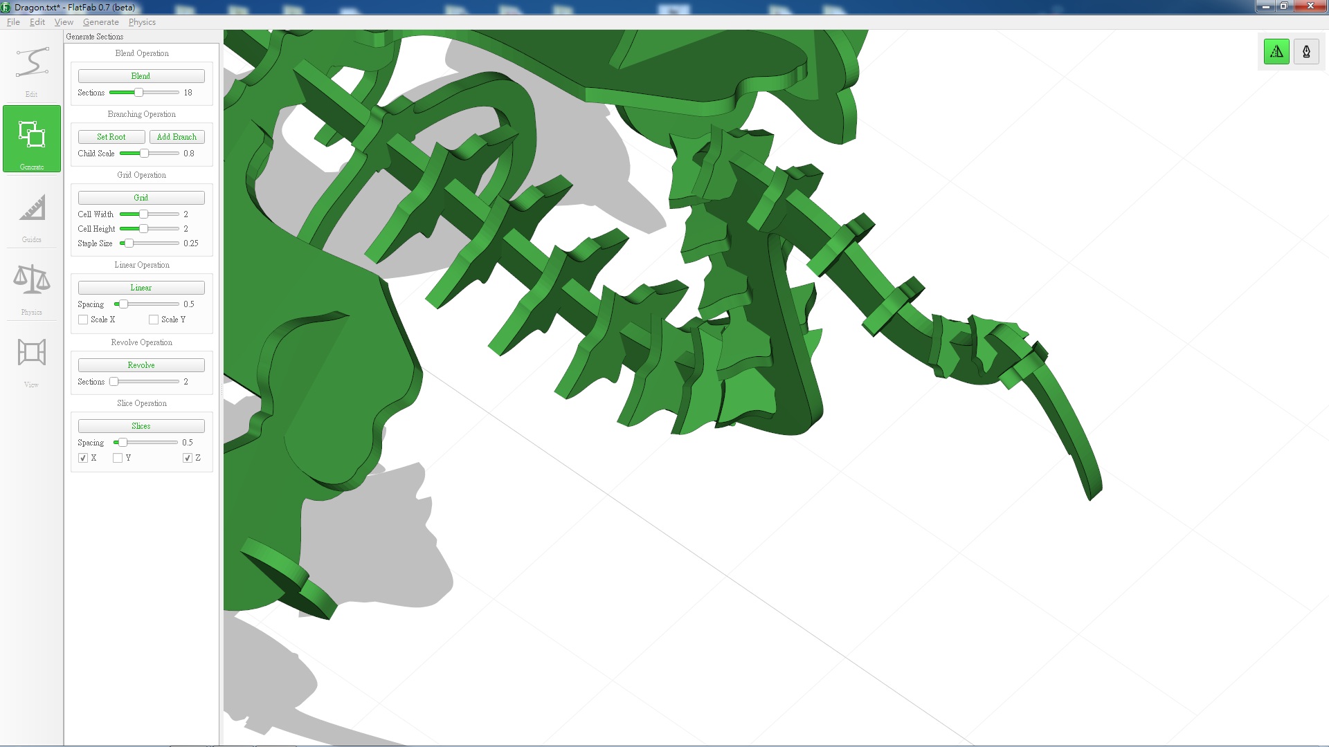 -Choose the thickness of the material in FlatFab BEFORE start drawing, other wise some of the parts will end up too thine for the sluts if increase the thickness after.