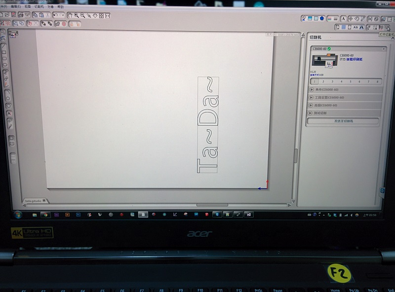 Importing the dxf file into the cutter software.