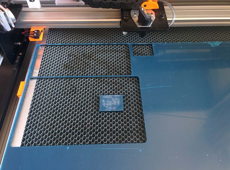 First, I laser etched the PCB traces onto a piece of acrylic. It's about 1mm deep.
