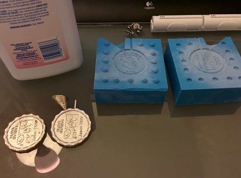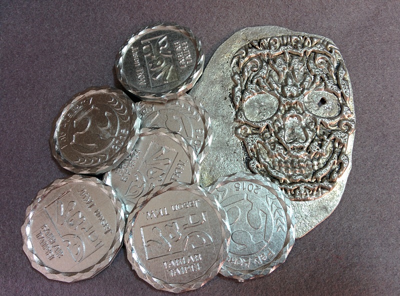 On the left are the new batch of coins I cast with a new bubble free mold, which turns out nearly perfect.