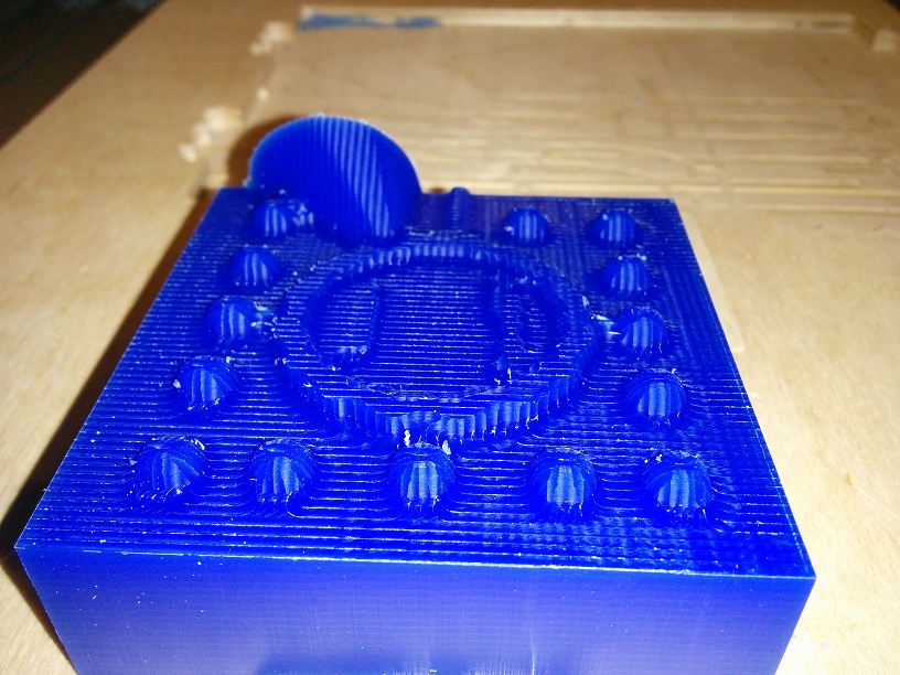 Using a Shapeoko 2 CNC, I start machine out the positive molds out of MachinableWax. The whole process uses four passes to finish with two end mills, one flat end 1/8" end mill, and one 0.2mm V shape end mill. After first two passes with 1/8" flat end end mill. After last two passes with 0.2mm V shape end mill. Left: Successed mold. (After a bit clean up with soft tooth brush) / Middle: failed mold due to bad tool path. / Right: Semi failed mold due to the high wall which break the 0.2 end mill. (The really smooth finish is done with a hot air solder as a test to see different ways to clean the mold after machining.)