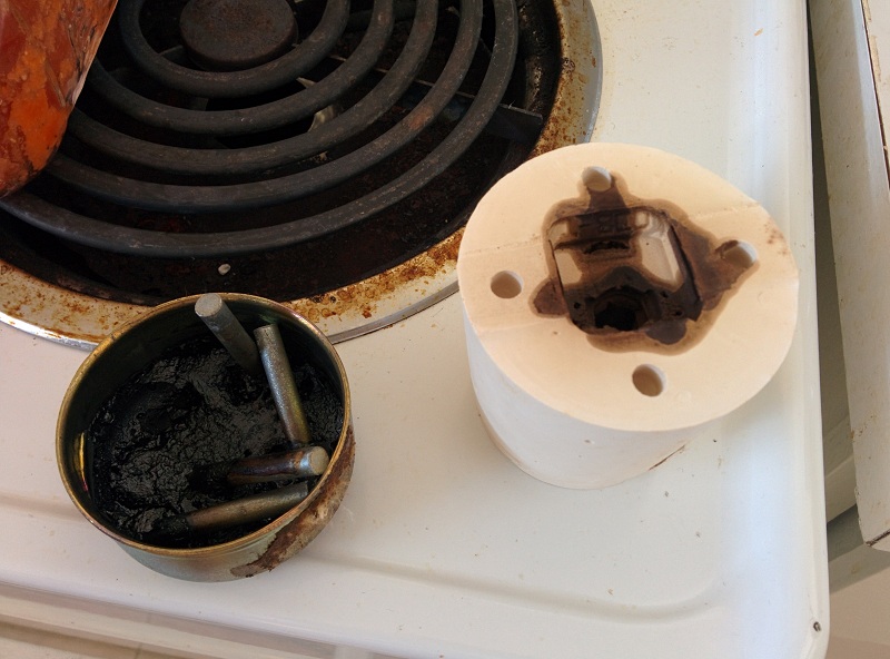 After the success of using smooth sil as mold material, I decide to give both OOMOO 25 and OOMOO 30 a try. To see how well they holds up to the metal's temperature.