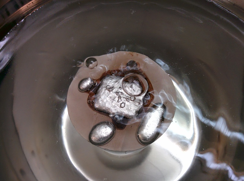 Casting the coin with pewter metal