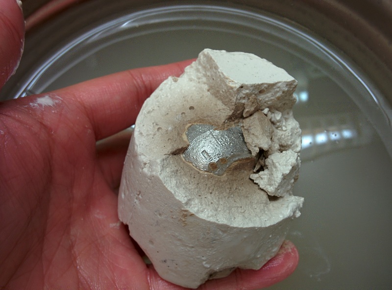 Update 4/26: I learned from the awesome people in Wellington that, If you apply dish washing liquid to the plaster mold and let it dries out before pouring the metal, it will become much easier to remove the plaster after the metal cures. I definitely will give that a try when I get the chance!