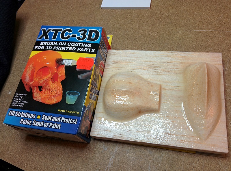 Since the wood have wood grain and CNC's lines, I decide to use XTC-3D to smooth the surface of the mold first.