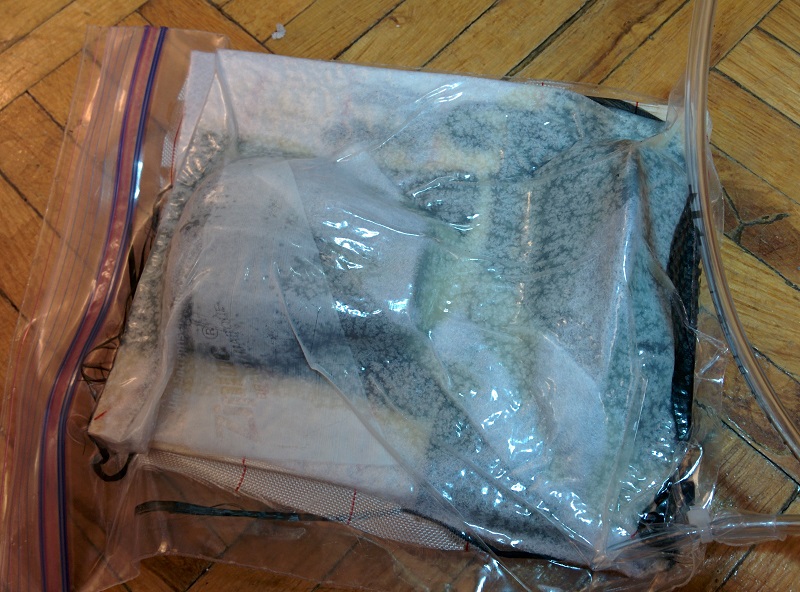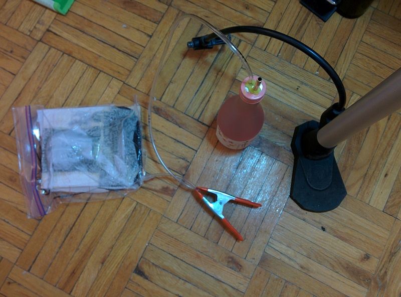 Pumping the air and keeping the vacuum with a clamp on the tube.