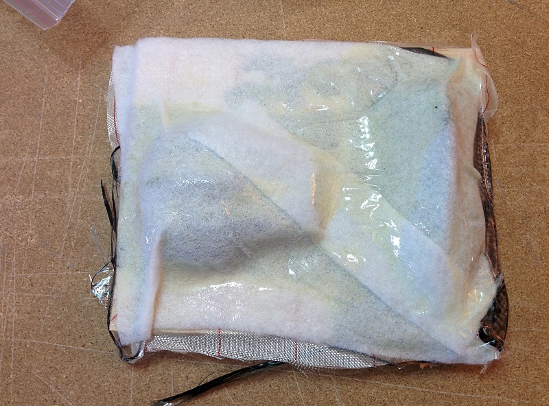 The extra resin is clearly being squeezed out the carbon fiber and being obsorbed by the cloth layer.