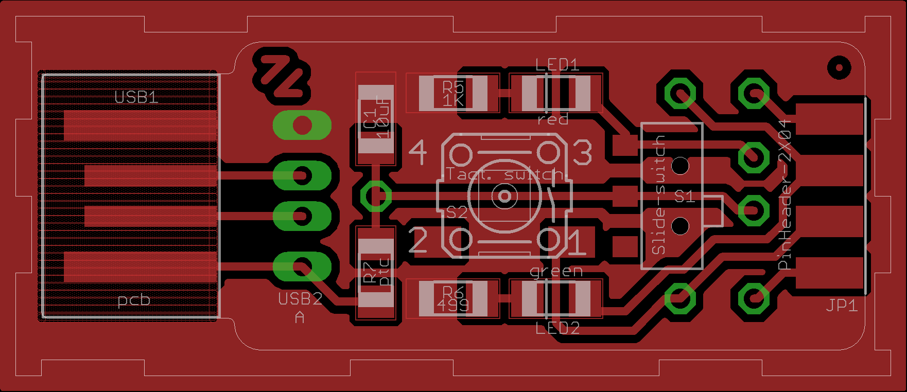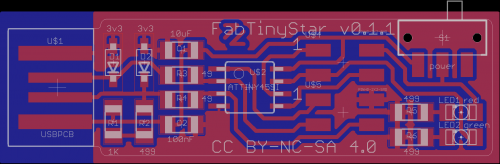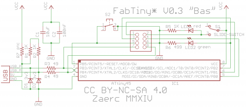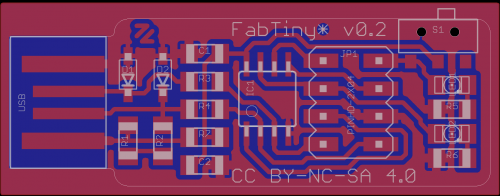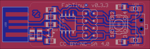 That was version 0.1, using a wrong footprint for the switch and less suitable resistor/capacitor footprints for milling. Still it worked beautifully, I have built three of these with various component configurations for testing.