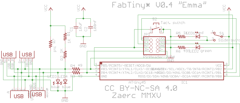 And I added an optional PTC resistor to protect the USB port from getting overloaded, due to a shorted circuit for instance.