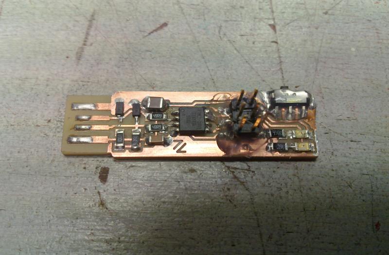 This basically started out as a 100% fab-able version of the vusbtiny programmer from simpleavr with a few minor additions, namely a switch and indicator LED for target-power and a LED on the SCK line (just like a real arduino). It was inspired by David Mellis' FabISP and Andy Bardagjy's FabISPKey although it doesn't feature any solder jumpers or zero-ohm resistors ;). I used to call it FabTinyISP, but since it has so many other uses, I have decided to change the name to FabTiny* (aka. FabTinyStar) where the asterisks symbolizes a wildcard denoting the endless possibilities. Or as Bas Withagen put it: a Fab-Tiny-Anything.