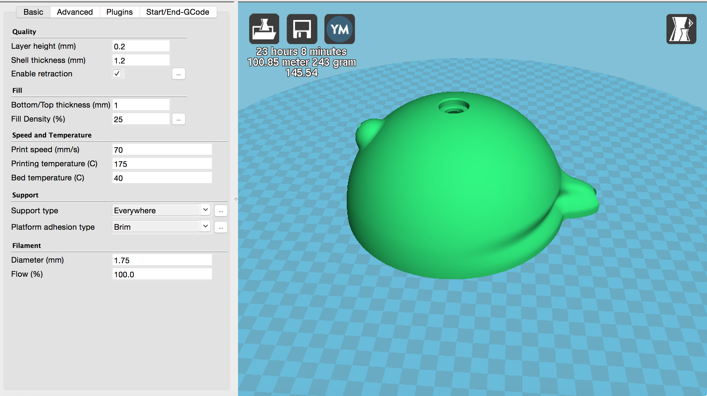 Only for the base of lamp printing time were 24 h . (file stl cura).