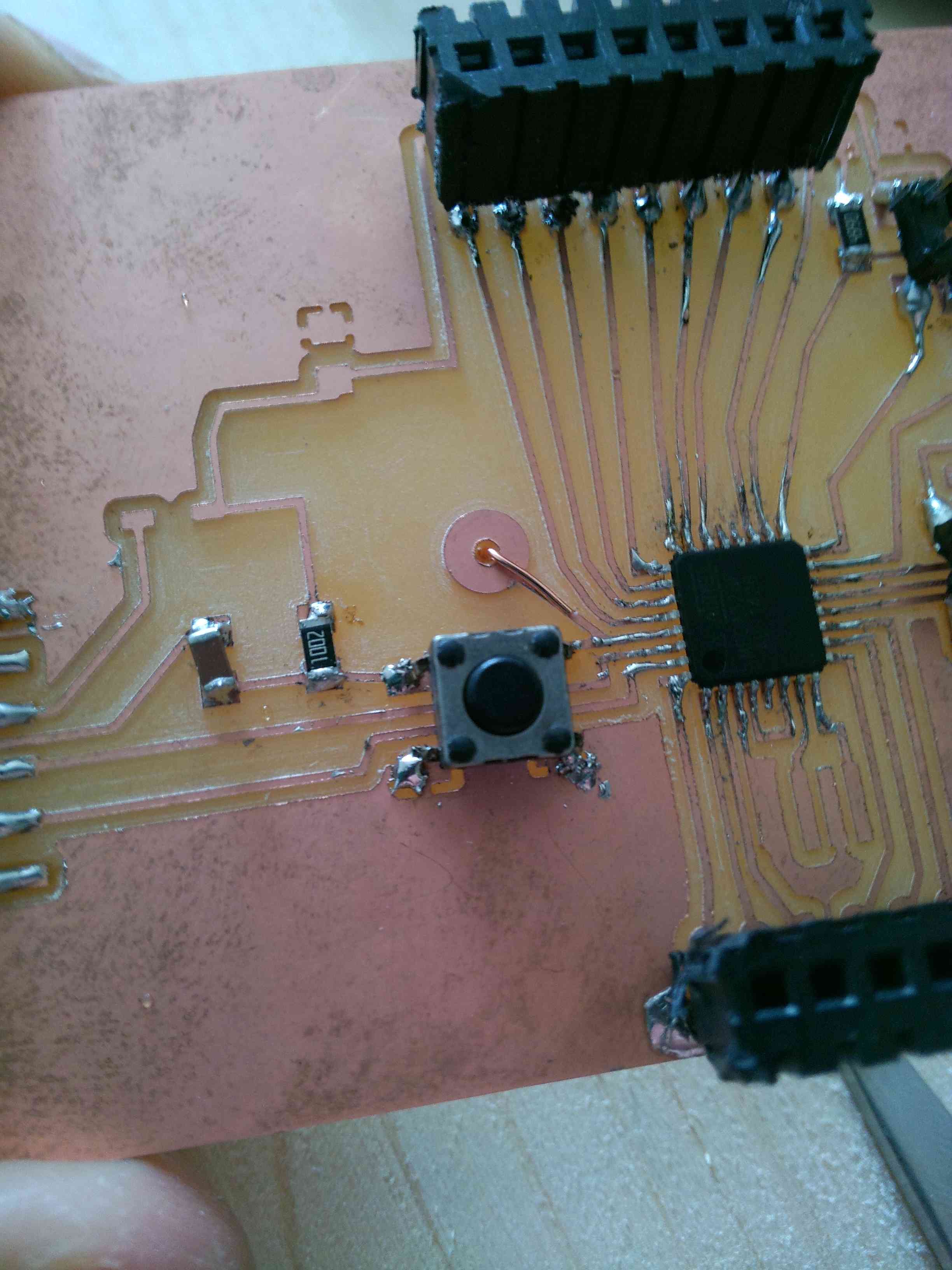 I have used in the input device assigment my Fabduino board. This is my board milled for the final project. I have design my board, milled and join. Here are the file.