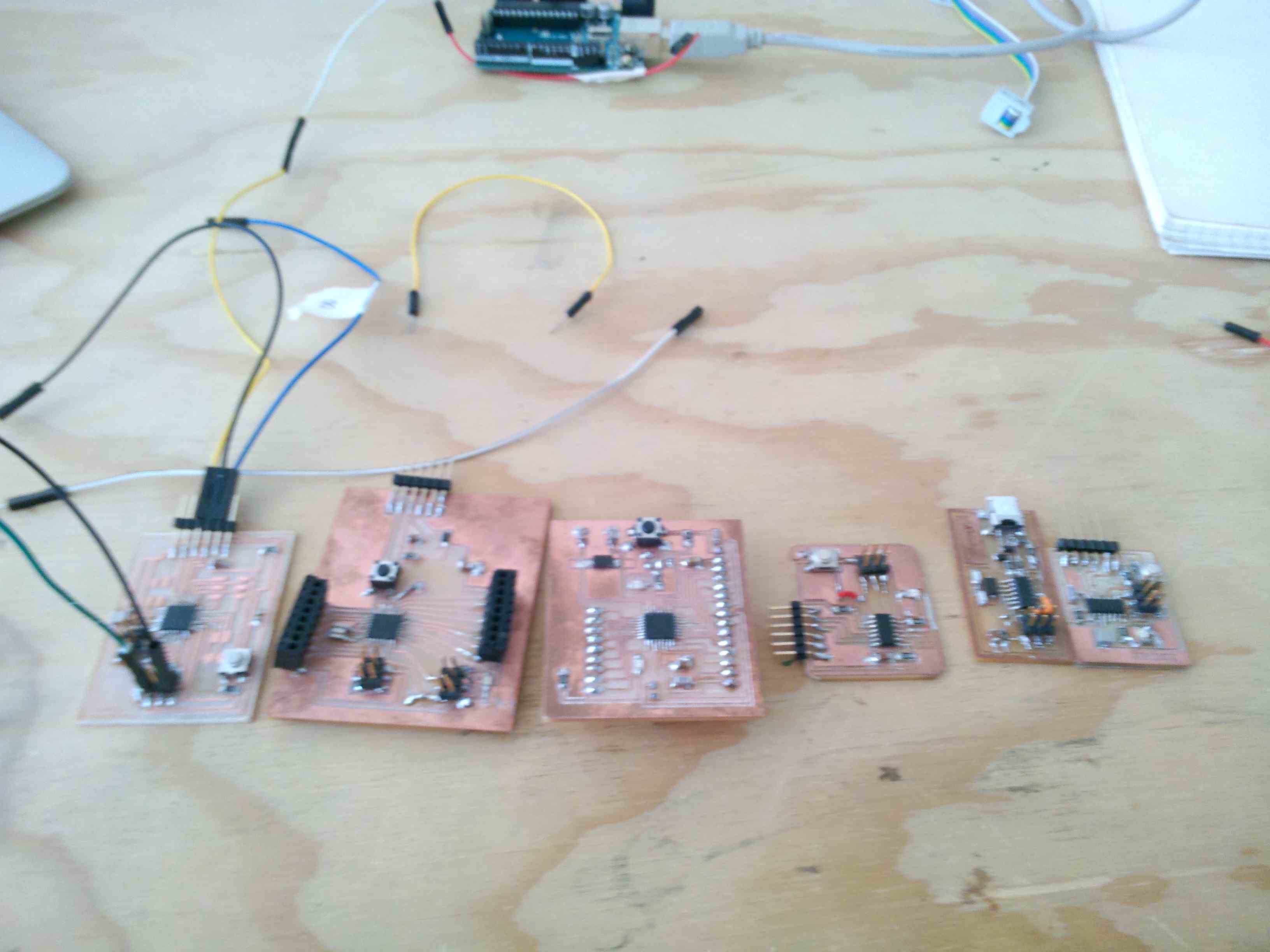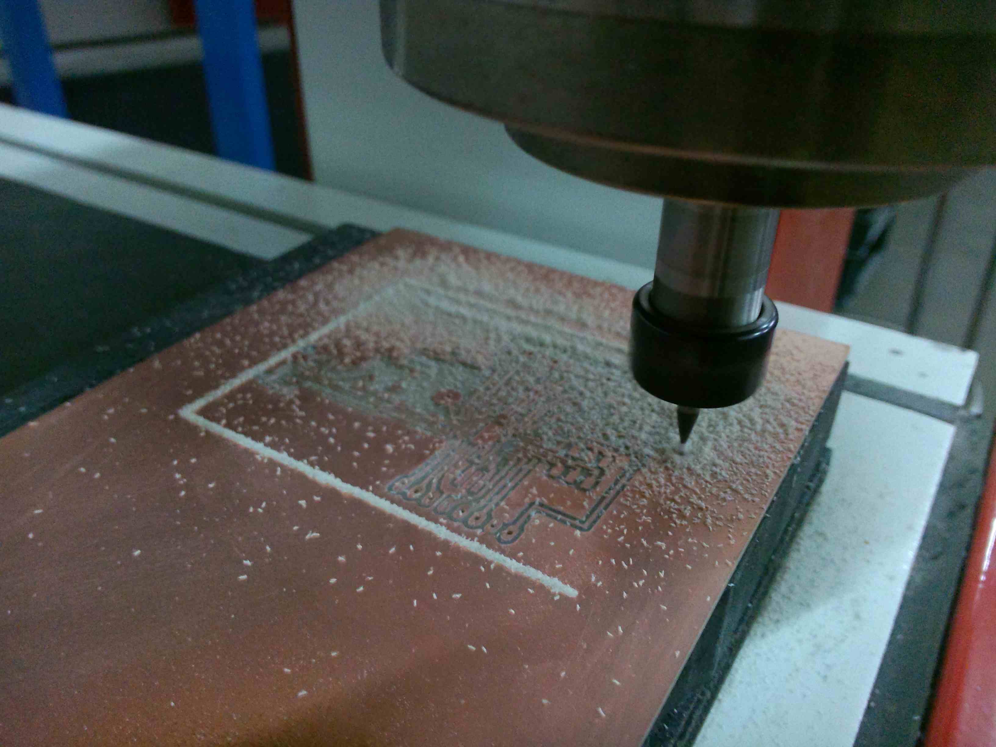 I just wanted to tell you that my path before arriving to a Fabduino was difficult. The photos below show this. I used Eagle for the design, illustrator for export in DXF and Aspire for milling.