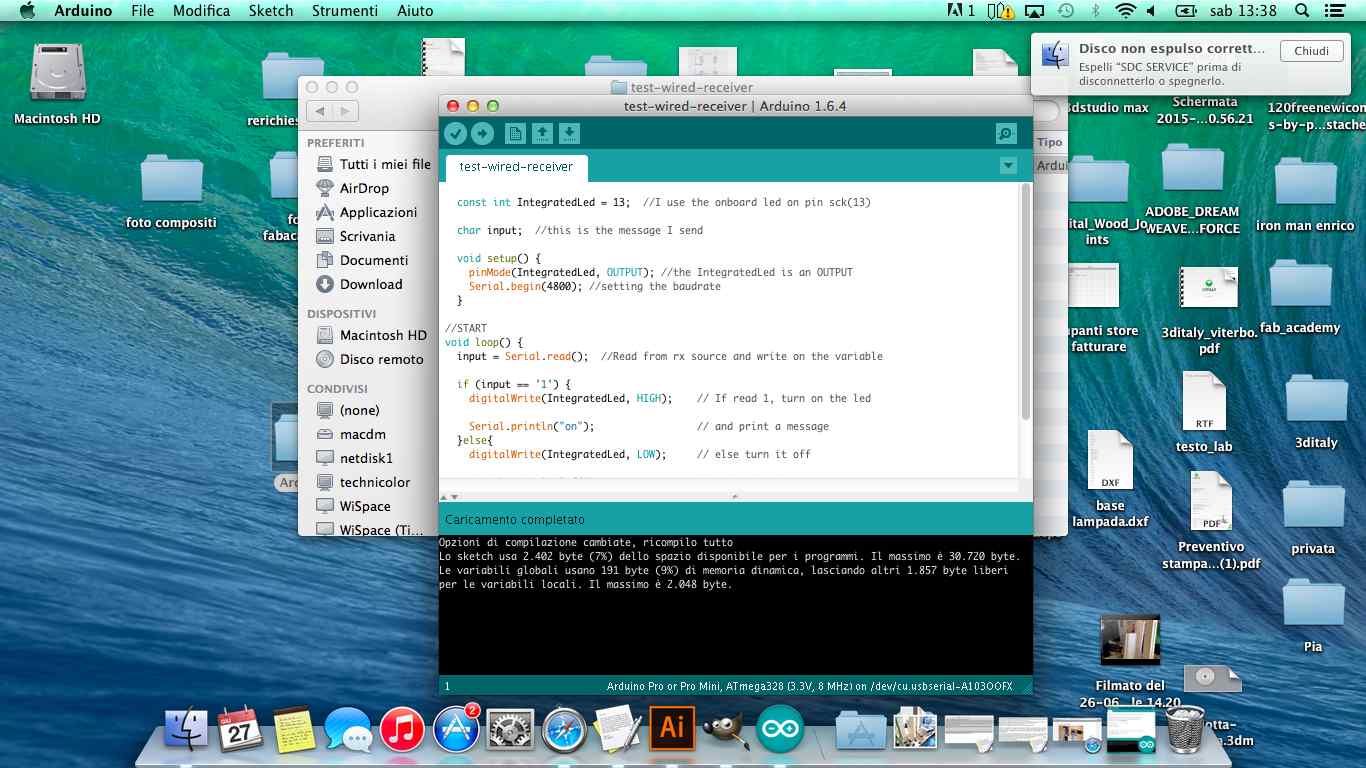 I started charging two sketch, the first will be inserted into the sender and the second in Fabduino receiver.