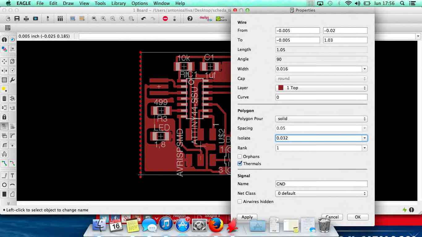 Step 1: I download the software Eagle, the last realis of eagle-mac-7.2.0.zip. and import component libraries, and installed the package Fab.ibr. Later we tried the components to be included in the initial three resistances, led, ground, capacitor. I studied what use components and how it should operate a scheme elettronic, because for me it was the first time. This is PNG sample
