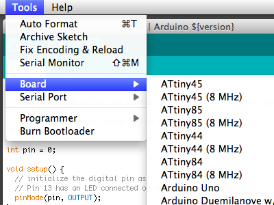When I first went to launch the IDE, the ATtiny would not show up in the Arduino Tools/Board list. The file structure, following an automatic unzip, kept a folder called "attiny-ide-1.6.x" in the pathway, which prohibited the board showing up as a choice. So, on the Mac, at least this needs to be removed so that you end up with the following folder structure : Documents > Arduino > hardware > attiny > avr