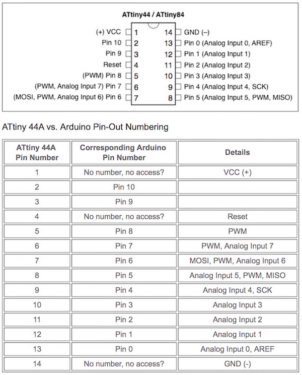 Note that the pinouts on the microcontroller are not the same numbers in the Arduino code.