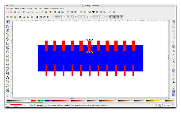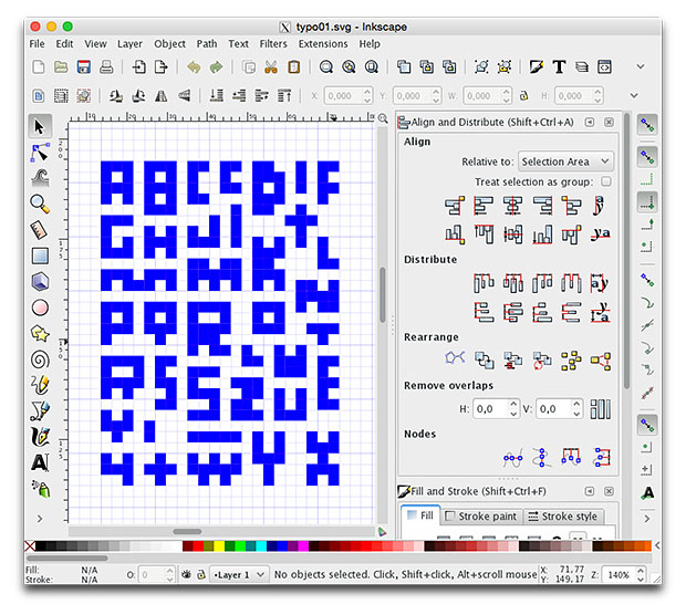 I drew the vectors using a grid in Inkscape and duplicating squares that snap to the grid.
