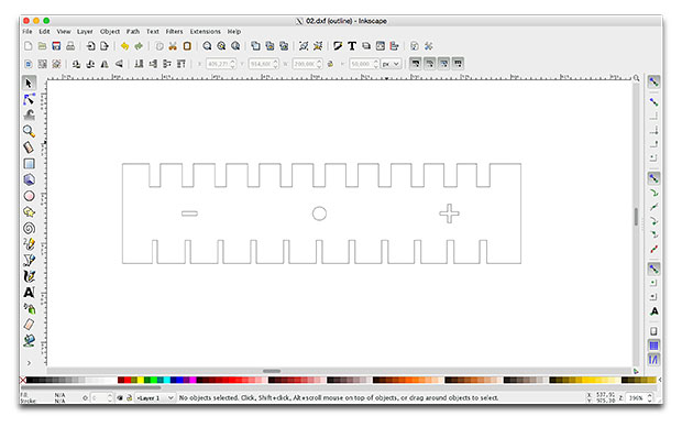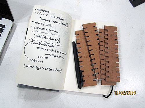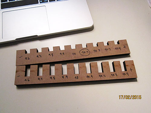 Thursday, brief introduction to Inkscape by one of our instructors. Personal goal for this week, use Inkscape as a main design tool (no previous experience ). I am used to work with Illustrator for vector graphics. Inkscape have some interesting features, let's give it a chance. First step, design a kind of ruler to check thickness of the material to laser cut, and also, find the best fit for the joints. The same design aims to check two cardboards with different thickness, 3mm and 6mm.