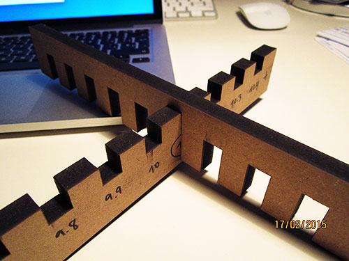 The 6mm cardboard doesn't work. The max size that the ruler can check is 6.5mm. Seems that the real thickness of the 6mm cardboard is more than 6.5mm! First error and lesson learnt of the week: don't trust the measures of the materials just because they are labeled with some numbers.