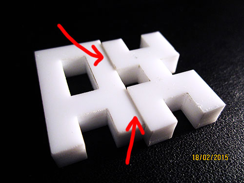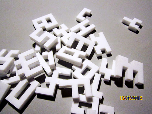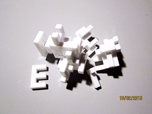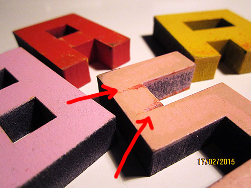 I remove the protective plastic that covers the acrylic sheet, and I start to join letters. Oh no, something went bad... Some letters work, some others not! WHY? After a while, I realize that the acrylic sheet was not completely flat. The first row of letters are thinner than the last row. Oh wait, something similar happened before? Yes.