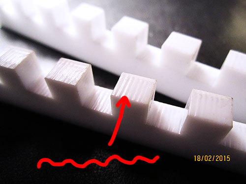 Cutting the ruler on acrylic I realise that the cut is not smooth. I was cutting on the Multicamm 2000, at a speed of 15 and power of 320. After some tests, I adjust the machine to speed 5 and power 100. The cut become smoother.