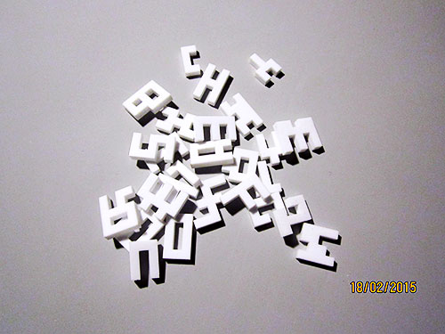 Here the tiny letters on 3mm cardboard (and the two big "A"). Cute, but too tiny. You can build something with them, but they are fragile.