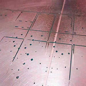 When the machine starts milling, we have to stay alert to stop the machine if anything goes wrong. We can stop it with the "VIEW" button. The end mill didn't perforate the whole surface, but nearly.