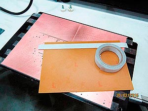 New PCB, new tape, everything is clean and there is no dust or waste to be sure that the surface will be completely flat. I checked also that the new PCB is flat or not, and I had to correct it bending it slightly.