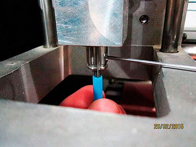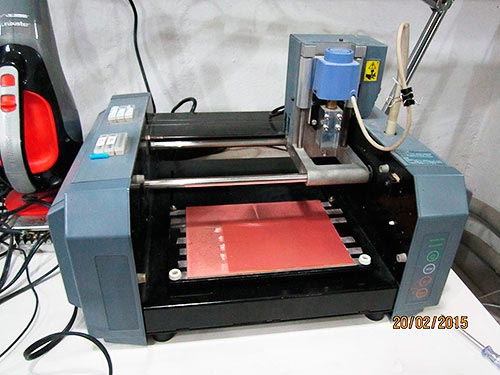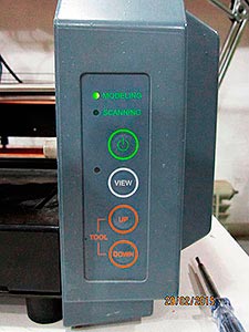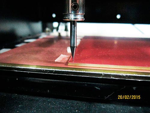 The machine is ready to set up the init point, using the "UP" and "DOWN" buttons. Press "DOWN" till you listen that the mill bit perforates, and then press "UP" a couple of times.