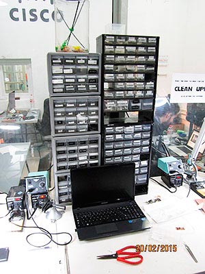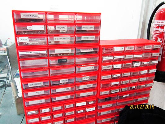 The drawers with all components we need for our boards. Be careful and organized while taking the components from the drawers, it's easy to make a mess.