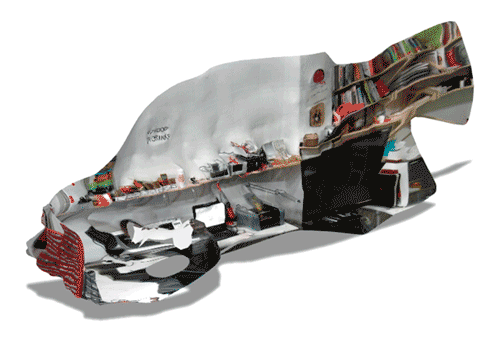 Below, the results. First image, 123D Catch. I created an animated gif to show the depth of the scan. You can also see an extrange form near the computer screen, this is the person moving. Second, Recap 360. A close up to see that the results have a lot of imperfections. Both apps have similar results. Maybe taking photos from different angles will help (I took all the photos from the same point, just changing the framing).