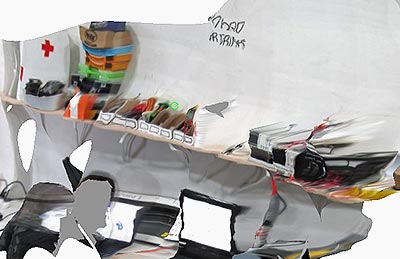 Knowing that, I decide to try to scan a corner of our work space. This time I take a lot of photos and I include inside the scene a person who is working, moving between photo and photo, just to see what happen.