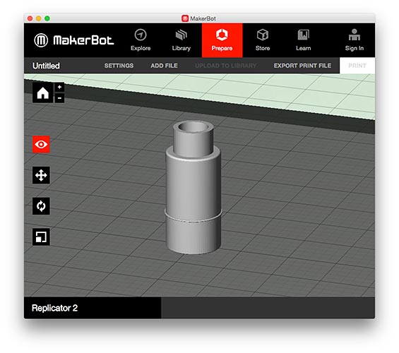 My first approach is to make a 3D model of the bigger piece of the mechanism to see the behaviour of the 3D printer.