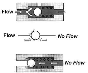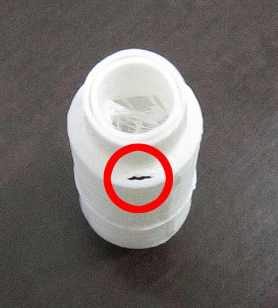This close up let us see that inside the piece there is "something" across. This "something" is what blocks the valve and let the water go out. Take a look at the schema aside to see how a valve works.